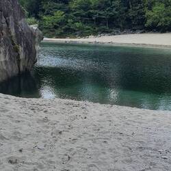 Nachdem alles ausgepackt war, das ganze Geschirr gespült, haben wir uns erst mal im See abgekühlt.