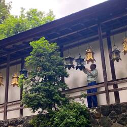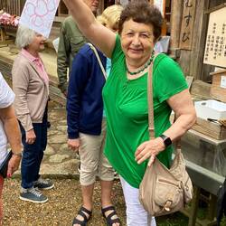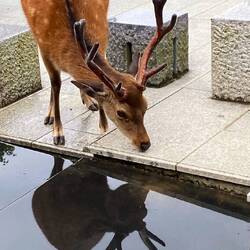 Попрощались с Киото и направились в Нару, которая тоже была когда-то столицей Японии. Сотни оленей свободно бродят повсюду и ластятся к людям. Здесь в огромном буддийском храме 8 века расположилась одна из самых больших в мире деревянная статуя Будды. Вокруг тоже много всего интересного. Туда же привели школьников и даже совсем маленьких. В одной из колонн внизу было сквозное отверстие, и дети один за другим пролезали сквозь него к восторгу публики. У входа Будда небольшой, до которого все дотрагивались, и он дарил здоровье. Далее было синтоистское святилище с тысячами каменных и сотнями металлических ламп и множеством красных ворот в разных направлениях. Я купила предсказание, которое надо было полоскать в бассейне, чтобы проявились слова. Гид перевела, что мне дается второй шанс на счастье, меня ждут успехи в учебе, но встретятся некоторые препятствия. Это был аттракцион!