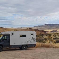 Nach zwei weiteren Übernachtungen sind wir wieder im Parque Patagonia, am Portal Cañadon Pinturas. Wir kommen gerade so durch das Tor (in der Höhe).
