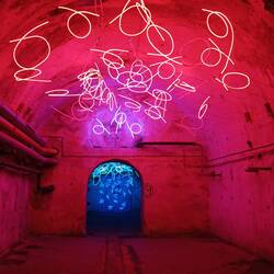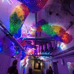 Die Lichtkunst befindet sich im Keller der ehemaligen Lindenbrauerei. Viele Kunstwerke wurden extraLue lisää