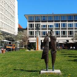 Der Frühling kommt zurück, es ist angenehm warm. Die Bäume sind fast noch kahl und so haben wir eine gute Sicht auf die Fassaden der Häuser.