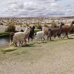 Der Tag begann super: blauer Himmel, Sonnenschein, Lamas am Fluss.