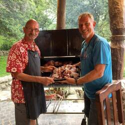 Zum Übernachten fahren wir zu Martina und Johan und ihrem Utopia Camping. Eine coole Location mit Außendusche wie in Afrika!