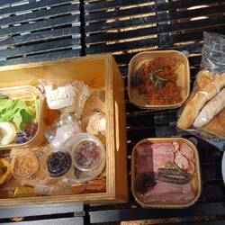 In einer Holzkiste wurden für je zwei Personen allerehand Leckereien hergebracht. Brot, Käse, Trockenfleich, gebratenes Hähnchen, Roastbeef und vieles mehr. Es war so viel der guten Sachen, dass wir nun für gut zwei Tage Vorrat haben.