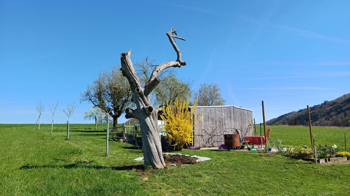 Markus hat uns geholfen, den "toten" Boskop Baum von Hand umzustossen.