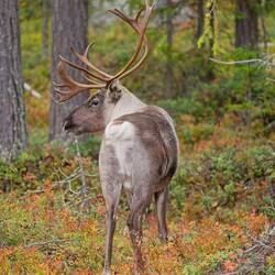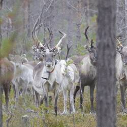 Fotoreise Tag 2: Am Vormittag in der Regenpause im Wald unterwegs auf der Suche nach Rentieren & Elchen, zumindest die Rentiere haben sich gezeigt.