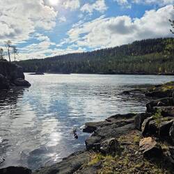 Technisch anspruchsvolle Wanderung an den Trollforsen, Abends dann Abendessen im Tipi mit super Polarlichter und auf der Rückfahrt haben wir dann noch eine Elchkuh gesehen