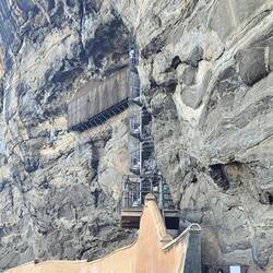 Der Abstieg ging wieder über die Steige an der äußeren Felswand zurück, bog aber auf halber Strecke ab, um dann in einer engen Wendeltreppe wieder nach oben zu führen in eine Höhle mit denRead more