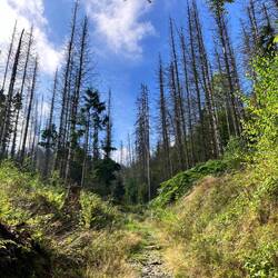 Von der Felsenmühle bis ins Bio Dorf Schmilka. Auf dem Weg haben wir uns durch unwegsames Gelände, alte Waldbrandgebiete und auf bzw. über den großen Winterberg (das höchste Hügelchen derMeer informatie