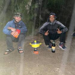 Arrivés dans La baule d'Argentine, on croise quelques retraités en croisière autour du monde qui nous prennent en photo, c'est vrai qu'avec nos mines sans douche depuis 2 jours on est des dieux du stade. On loue une voiture car ça nous coûte moins cher qu'un tour avec un guide pour faire le tour de la péninsule. Ceci fait, on ne perd pas une minute pour aller faire notre première nuit de camping à Puerto Piramides dans le parc. Acceuillis par le déluge, le ciel finit par se dégager et notre riz au champignons et sa pièce de boeuf sous les étoiles est une réussite! 🤤