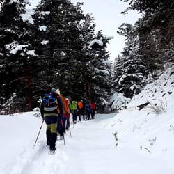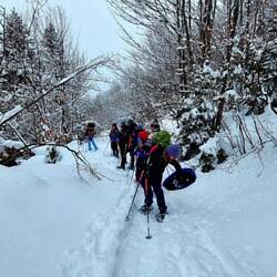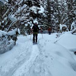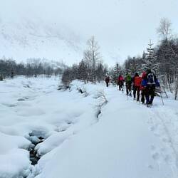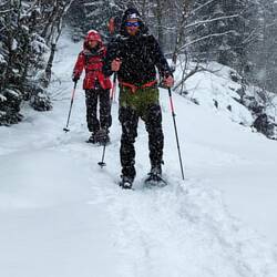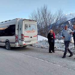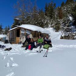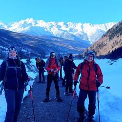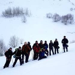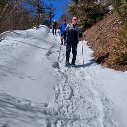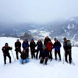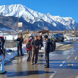 Eine kurze Fahrt bringt uns zum Startpunkt unserer heutigen 5. und letzten Schneeschuh-Wanderung. 2 Mitreisende setzen heute aus.