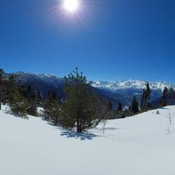 Unsere heutige Schneeschuhwanderung startete in dem kleinen Dorf Lachiri. Von