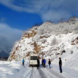 In der Nacht hat es geschneit. Unser Kleinbus bringt uns weit hinein ins Chalaadi-Tal. WirЧитать далее