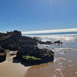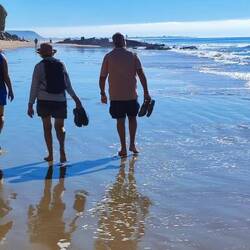 Mit unseren Campingfreunden Nadin und Stefan von Fuente del Gallo übern Strand nach Conil.