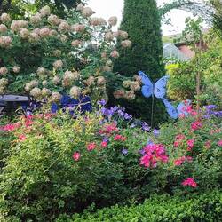 Diesen schönen Garten haben drei Schwestern gestaltet und pflegen ihn. Als besonderes Leckerchen gibt es selbst gebackenen Kuchen.
