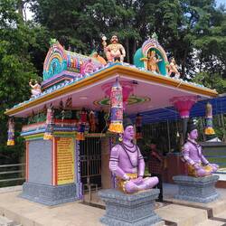 Anschliessend fuhren wir weiter, dabei passierten wir die Landfill/Abfalldeponie der Insel (musste natürlich anhalten und mein kritisches Auge darauf werfen😅). Wir hielten per Zufall bei einem sehr farbigen verlassenen (aber schönen) Buddhistentempel an und wurden dort vom leidenschaftlichen Tempelbauer rumgeführt und auch zu einem "geheimen Tempel" gebracht. Wir wurden dabei sogar "gepunktet/gesegnet" und mussten heiliges Wasser trinken😂 Er verlangte für all das nicht mal etwas! Ist selten.. Wir gaben ihm aber natürlich etwas🙂
