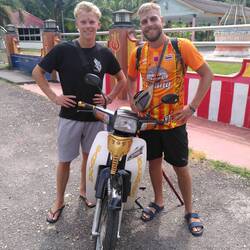 An Tag 2 mietete ich mit Rasmus einen Roller und wir düsten zum bekannten CableCar (Gondel auf einen Berg), von wo wir eine coole Aussicht geniessen konnten. Das ganze war mir aber viel zu massentouristisch und das Schlange stehen ging mir auch auf den Wecker😅 Anzumerken ist, dass es hier viel weniger europäische Touristen gibt, aber mehr indische, malaysische und sonst welche asiatischen. Zudem gibt es aus irgendeinem Grund viele Duty Free Shops auf der Insel🤷🏼♂️, dort entdeckte ich auch Toblerone und Ovomaltine Produkte 😍 Das Meer bzw der Beach war nicht ganz so schön wie in Thailand, aber noch immer gut🙂 Tag 2 liessen wir mit einem "Döner" und mit ein paar Bierchen ausklingen. Tag 3 war der beste Tag: Wir fuhren erneut mit dem Roller in den Norden zu einem unscheinbaren Wasserfall. Überraschenderweise war es aber sehr nice dort, denn es hatte wenige Leute,man konnte baden und der Wasserfall war schön.😁