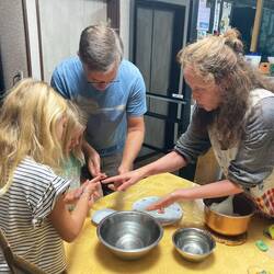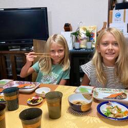 Hier, les hôtes de notre auberge nous ont reçu avec un souper maison japonais. C’était extraordinaire et délicieux! Les japonais mangent vraiment différemment: plusieurs petits plats, servis en plateau, beaucoup de légumes cuits/ marinés. Et après le repas, nous faisons des onigiris. Quelle belle expérience!