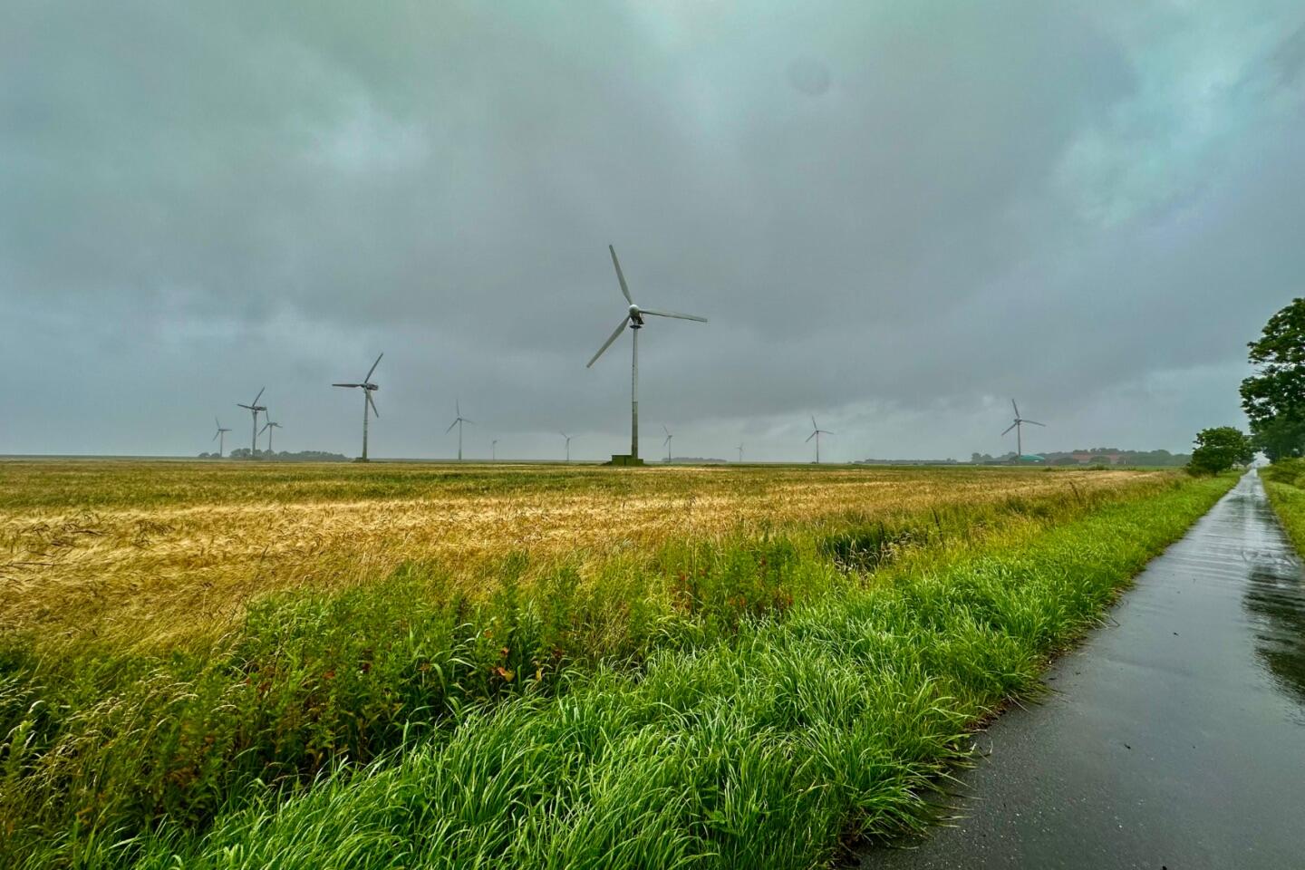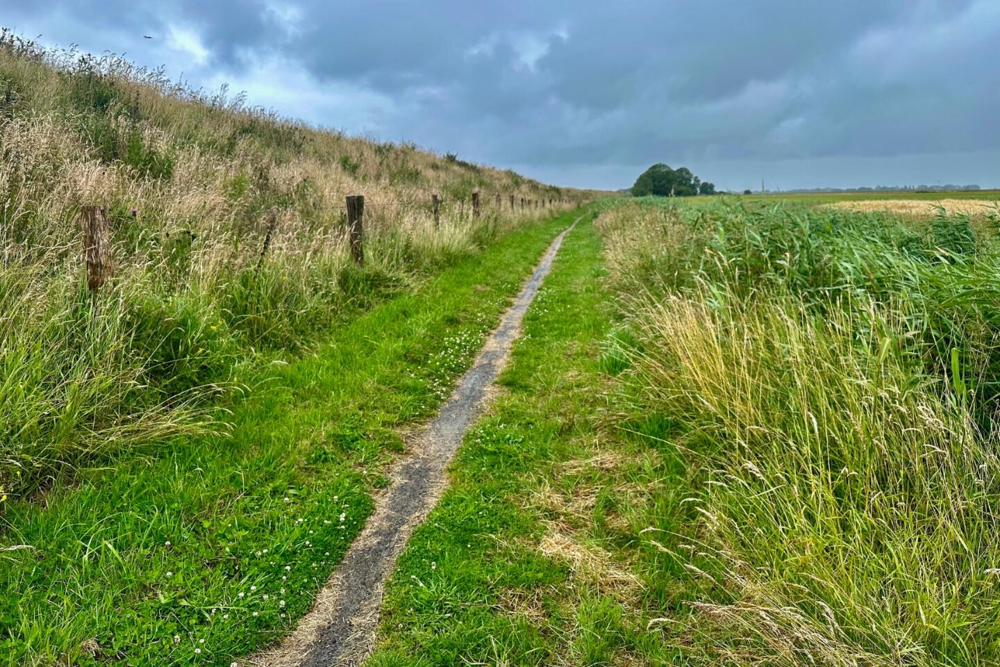 Satter Wind auf dem Weg zum Deich.