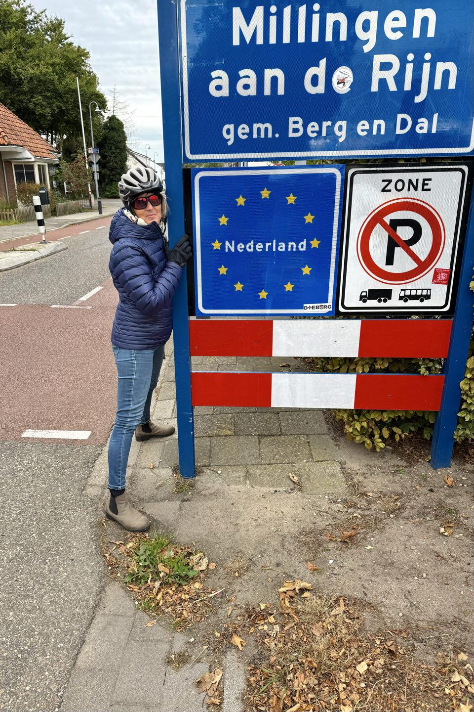 Rechtes Bein in Deutschland und linkes Bein in der Niederlande.