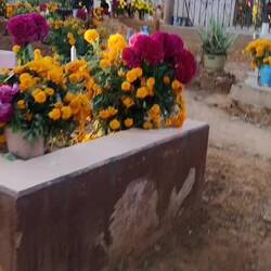 We could prepare the oltar "ofrenda" for their daughter who died 3 years ago. We could try many different dishes, dance on the square with costumes, bring part of the meal to other neighbors and family members and in the end have a party on the graveyard.