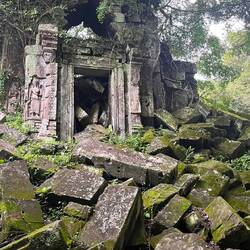 L’après -midi : Temple de Beng Mealea datant du 12ème siècle. Son plan d’ensemble et son style auraient servi de modèle à l’édification d’Angkor Wat. Beng Mealea est envahi par les lianes et les racines qui ont véritablement remodelé ses formes, et a servi de décor au film de Jean-Jacques Annaud “Les Deux Frères”.Okumaya devam et