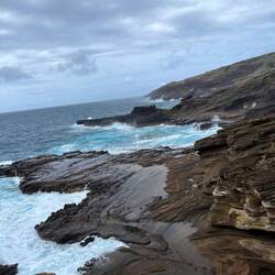 Der Sandy Beach ist durch den bewölkten Himmel leider nicht sooo schön, wie ich ihn mir vorgestellt hatte. Außerdem herrscht ein starker Wellengang, der einige Surfer dennoch nicht abschreckt. Eine Schulklasse startete gerade eine Müllaktion und säuberte den Strand als ich ankam. Weiter gehts zum Halona Blowhole Lookout, der wirklich wunderschön ist. Das Blowhole macht bei dem Wellengang seinen Namen auch alle Ehre und die Schönheit des Meeres ist von hier oben viel besser zu sehen als am Strand. Ich mache auch noch kurze Stopps am Halona Beach Cove und beim Japanese Fishing Shrine. Weiter gehts zum Lana‘i Lookout, den ich mir etwas spektakulärer vorgestellt hatte. Dafür waren die Ausblicke am Weg umso schöner.
