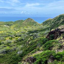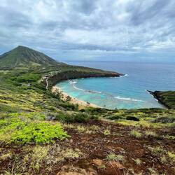 Nach einem weiteren Stück Schnellstraße habe ich es zur Haunama Bay geschafft. Wie erwartet gibt es leider keine Tickets mehr, man hätte gegen 7 Uhr schon da sein müssen. Da es den direkten Bus leider seit kurzem auch nicht mehr gibt, wäre das doppelt mühsam gewesen. Immerhin kann man ohne Reservierung den Haunama Bay Ridge Top Trail gehen wo man einen tollen Blick auf den Strand und den gegenüberliegenden Koko Head hat. Nur bis fast zum Ende des Weges würde ich im Nachhinein nicht mehr gehen, weil es sehr weit und nicht so spektakulär von der Aussicht war.