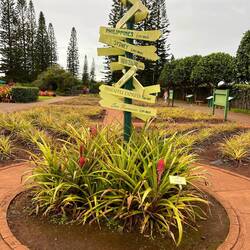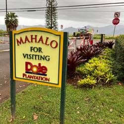 An der Dole Plantage angekommen merkte ich sofort wie touristisch alles hier war: riesiger Shop, kleinere Shops, Restaurant, Food Trucks und einige Menschen. Es gab drei Attratktionen: eine Zugfahrt zur Ananasplantage, einen Garten, ein Labyrinth. Ich wollte natürlich zur Ananasplantage. Da nur mehr sehr wenig Zeit war steuerte ich gleich direkt darauf zu und musste feststellen, dass die letzte Fahrt leider bereits ausgebucht war 🙁 Dann dachte ich mir, dass ich mir den Garten mit den Ananas ansehe. Hier wurde mir aber mitgeteilt, dass dort keine Ananas sondern nur andere Pflanzen zu sehen sind. Als dachte ich mir dass ich dann zumindest durch das Labyrinth gehe. Aber mir wurde gesagt, dass zwar noch Tickets verkauft werden, aber eine Runde ca 45 Minuten dauert, aber die Tore in 20 Minuten geschlossen werden. Sehr sinnvoll, dass dann überhaupt noch Tickets verkauft werden 😅 Na gut, dann halt eben nicht. Immerhin gab es ein paar kleine Ananaspflanzen und Informationstafeln in einem kleinen kostenlosen Garten zu sehen. 🍍 Ich hatte ja zum Glück erst vor ca einem Jahr eine Ananasplantage besucht, deswegen war alles halb so schlimm. Ich hatte im Internet zuvor gelesen, dass hier auch ein Ananassofteis verkauft wird. Ich beschloss mir zumindest das zu gönnen und muss sagen, dass es wirklich sehr lecker war 😋
