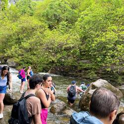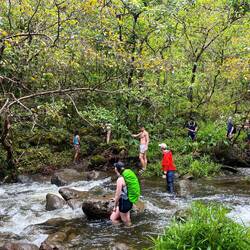 Beim Wandern zum Wasserfall war der Weg richtig gatschig und teilweise sehr mühsam zu bewandern. Darüber hinaus gab es einige Flussüberquerungen, wo man seine Schuhe ausziehen musste, damit diese nicht nass werden. Es regnete auch ziemlich immer wieder kurz, aber wir ließen uns nicht beirren und beschlossen bis ans