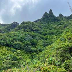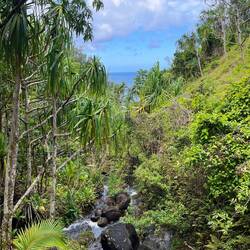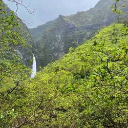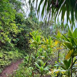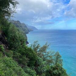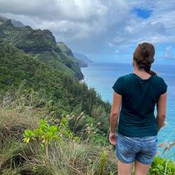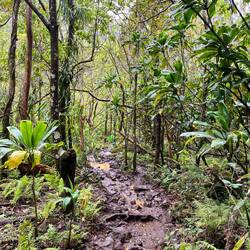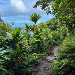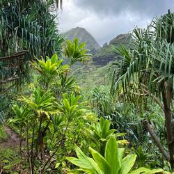 Ganz zu Beginn geht man sehr gemütlich ebenerdig zum Ke‘e Beach. Von dort startet dann der erste Teil der Wanderung, der einen Teil des Kalalau Trailhead entlang führt. Eigentlich führt der Weg bis an sein Ende zu einem speziellen Strand. Dort muss man dann übernachten und am nächsten Tag wieder alles zurückgehen. Hierfür benötigt man eine weitere spezielle Genehmigung. Ohne Camping Zeug wollte ich das nicht und begnügte mich mit der Teilwanderung zum Hanakapi‘ai Beach. Der Trail war dann schon anspruchsvoller, da es teilweise etwas gatschig war und immer wieder bergauf und bergab ging. Dennoch war er auch gleichzeitig wunderschön von der Vegetation. Viele verschlungene Lilianen und andere Pflanzen waren zu bestaunen und man hatte atemberaubende Ausblicke auf die Na Pali Küste. Als wir am Strand ankamen schüttete es kurzzeitig ziemlich heftig. Da es dann aber wieder aufhörte und wir noch genügend Zeit hatten, beschlossen wir noch weiter zu den Hanakapi‘ai Falls zu gehen. Eine große Fehlentscheidung wie sich später herausstellte. Der Strand an sich haute mich nicht um, kann aber auch am Wetter gelegen haben.