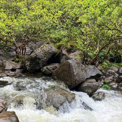 Letztendlich blieben wir dann als Gruppe mehr oder weniger den gesamten Rückweg zusammen und halfen uns gegenseitig. Die Männer stellten sich immer in die reißende Strömung und halfen uns rüber. Die erste Flußüberquerung musste ich dann in über hüfthohen eiskalten Wasser rübergehen. Sogar mein Rucksack war halb im Wasser und die Schuhe hab ich mir dann natürlich auch nicht mehr ausgezogen. Es war echt nervenaufreibend und extrem unangenehm mit den komplett durchnässten Schuhen alles zurückgehen zu müssen. Natürlich war ich dann durch die Regenfälle auch von oben bis unten komplett durchnässt, ein echter Alptraum. Wege gab es keine mehr, nur mehr Schlammbäche. Ich hatte große Angst irgendwo auszurutschen und mich zu verletzen. Und natürlich auch die Sorge, dass wir einen Fluss gar nicht mehr überqueren konnten. Ich ärgterte mich auch extrem über mich selbst. Ich hätte die Siuation nach dem ersten Regenguss besser einschätzen müssen und gar nicht raufgehen sollen. So war ich oben und habs doch nicht zum Wasserfall geschafft. Hätteich zu Begin nicht so lange auf meine Begleitung warten müssen, wäre es sich womöglich ausgegangen. Aber hilft jetzt eh nichts mehr. Und ganz clevere Leute sind trotzdem noch raufgewandert, obwohl wir alle empfohlen hatten nicht mehr rauf zu gehen 🙈