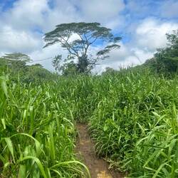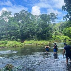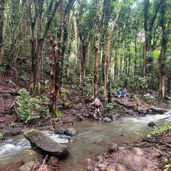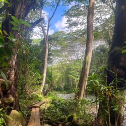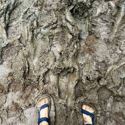 Dann paddelten wir ca 60 Minuten bis zu einer Sackgasse des Flusses, von dort ging es dann 45 Minuten weiter mit einer Wanderung durch den ärgsten Gatsch meines Lebens 😂 Ich dachte ich bin nach den letzten zwei Tagen schon merklich abgehärtet, aber das sprengte alles bisher da Gewesene. Man versank nur mehr tief im Schlamm. Zum Glück war ich schon vorbereitet und hatte das verdreckte Gewand vom Haena State Park einfach wieder angezogen und dieses Mal meine Trekking Sandalen, die man gut abwaschen kann. Das war zumindest clever, aber dennoch sehr mühsam.