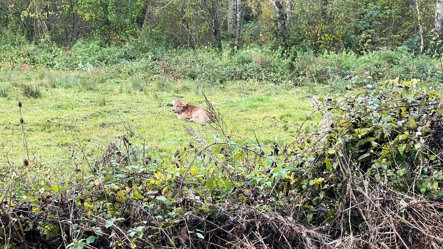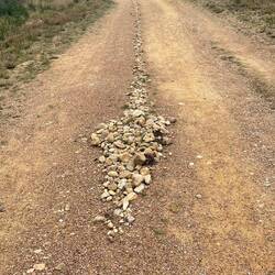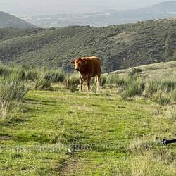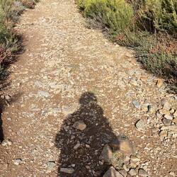 Die Nacht habe ich gut geschlafen und mal richtig gut gefrühstückt. Als ich raus bin, hatte ich erst die Befürchtung, dass es stark bewölkt sein muss, weil ich nirgendwo den Mond gesehen habe. Als ich dann außerhalb der Stadt war und es kein künstliches Licht mehr gab, sind mir die ganzen Sterne um mich herum aufgefallen, aber kein Mond. Und das hat mich sehr irritiert, da ich eigentlich gut sehen konnte und es nicht so dunkel war. Habe mich ein paar Mal umgedreht, aber da war nirgendwo ein Mond zu sehen. Es hat leider länger gedauert, als ich zugeben möchte, bis ich dahinter gekommen bin, wo er denn nun ist. Natürlich genau über mir. Das habe ich wegen meiner Cap leider nicht gesehen, und erst der Schatten eines Baumes, der ganz komisch unter ihm lag, brachte mich mal auf die Idee, nach oben zu sehen. So gegen halb 8 begegnete mir eine liebe Katze. Sie war wirklich sehr zutraulich und tanzte um meine Füße herum und miaute vor sich hin. Ich habe mir mein Sitzkissen aus dem Rucksack genommen und habe ihr ein wenig von meinem Hündchen abgegeben und konnte sie nebenbei ganz viel streicheln. Sie hat sogar Wasser aus meiner Hand getrunken. Nur leider hatte ich nicht mehr ganz so viel Fleisch dabei, und um satt zu werden, hat das sicher nicht gereicht. Trotzdem hat sie sicher weitere 30 Minuten mit mir dort gesessen und ist mir auch, nachdem ich weitergelaufen bin, noch 10 Minuten gefolgt. Ich hatte also kurz einen Wanderfreundin!