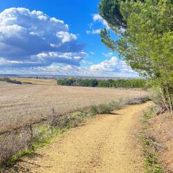 Ich habe super geschlafen. Aber leider viel zu lange. Heute ist eine 40km Tour geplant und ich wollte früh los. Das ging schon mal daneben, weil ich so lange geschlafen habe (8:20 Stunden Schlaf). Muss wohl daran liegen, dass hier sonst niemand ist. Als ich gerade losgehen wollte und alle Sachen bereits gepackt hatte, habe ich die Kopfhörer aufgesetzt, wollte sie einschalten und hörte das Geräusch, das sie machen, wenn sie ausgehen. Sie waren die ganze Nacht über an und hatten nur noch 20%. Das ist einfach ein Designfehler, dass sie nicht automatisch ausgehen nach ein paar Stunden. Jedenfalls muss ich jetzt noch warten, da ich nicht ohne gehen will. Zum Glück laden die Kopfhörer sehr schnell, aber trotzdem fing der Tag deshalb schon nicht so gut an. In diesem Ort gibt es zwei Herbergen, die auch beide geöffnet haben. Letztes Mal war ich in der anderen Herberge. Hier ist kein Ort zum Einkaufen, was bedeutet, dass man sich etwas mitgebracht haben musste oder dass man das Pilgermenü nimmt. Herberge A, wo ich letztes Jahr war, habe ich als sehr angenehm in Erinnerung gehabt. Übernachtung 15 €, Essen 12 € + 2 € für kleines Frühstück. Es ist eine Privatperson, und dass da auch wirklich Leute wohnen, hat den Vorteil, dass es sehr sauber ist und warmes Wasser, Waschmaschine und Trockner vorhanden sind. Herberge B, in der ich heute war, hatte dagegen nichts. Eine Küche mit Gasherd, ohne Gas, ein Wasserboiler, der defekt war, beide Duschen waren in einem schäbigen Zustand und tropften permanent. Und das nicht gerade leise. Leider gab es keinerlei Küchengeräte wie einen Wasserkocher oder eine Mikrowelle. Dafür hat das Essen hier allerdings sehr gut geschmeckt, und für 8 € war ich von der Menge sehr überrascht. Wenn ich das nächste Mal wieder hierher kommen sollte, wüsste ich nur noch nicht, ob ich A oder B wählen würde.