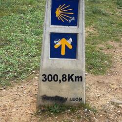 Am Morgen war mein Fuß schon etwas besser. Davon, dass ich umgeknickt bin, habe ich zumindest nichts gemerkt, die Blase jedoch sehr deutlich. Das war jedoch nach 2 km wieder vorbei. Auf León habe ich mich schon ziemlich gefreut. Da habe ich schon einiges erlebt, und das Besondere heute ist, es ist nicht Silvester! Keine Ahnung wie, aber ich bin bisher immer an Silvester in León gelandet, und ich war bisher noch nie 2x in derselben Herberge. Ich erinnerte mich sehr gut an den Supermarkt auf der rechten Seite. Nach meiner 72-km-Tour bin ich dorthin, um mir etwas zu kaufen, und habe mich dann auf die Bank davor gesetzt und bin nicht mehr hochgekommen. Ich musste mir dann ein Taxi bis zur Herberge rufen. Die Bank existiert heute noch. Ich bin wieder in den Supermarkt gegangen, um mich zu versorgen, und habe dann auf der Bank etwas gegessen. War schön, danach einfach weiterlaufen zu können. Dann bin ich am Check-in-León vorbeigekommen. Bei meinem ersten Camino habe ich mich am Schienbein verletzt und bin von Villa Grazia (oder so ähnlich, keine Lust nachzuschauen) mit dem Zug bis nach León gefahren und habe hier 3 Tage in dem Hostel verbracht. An den anderen 3 Herbergen, in denen ich bisher dort geschlafen habe, bin ich auch vorbeigekommen. Nun kenne ich León auch bei Tageslicht! Und davon hatte ich heute definitiv mehr als genug. Im Gegensatz zu gestern war es leider warm und sehr sonnig. Aber nicht zu warm, sodass ich doch gut durchgekommen bin. Da ich mir für León mehr Zeit genommen habe, bin ich erst um 17 Uhr in meiner heutigen Herberge angekommen. Und rate mal, wer wieder da ist: Vance! Schon witzig. Wir sprechen das nicht vorher ab, wo wir Halt machen, das passiert einfach. Er ist erst gegen 19 Uhr angekommen. Nach León teilt sich der Weg auf. Eine Route führt an einem Fluss entlang durch das Grün auf Feldwegen und der andere Weg führt entlang der Autobahn. Ich habe mich natürlich für die Autobahnroute entschieden, in der Hoffnung, nicht zu viele Menschen in der Herberge zu treffen. Es sind trotzdem 10 Leute hier. Ich habe mich hier nett mit einer Französin unterhalten, und nachdem Vance da war, haben wir ein paar Runden UNO gespielt.