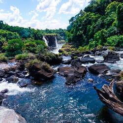 Übernachtet habe ich auf der brasilianischen Seite, in dem kleinen Städtchen Foz de Iguaçu. Dieses ist eigentlich recht unscheinbar und lebt offensichtlich hauptsächlich von den Wasserfällen und dem dazugehörigen Nationalpark. Gelegen ist der Ort an dem Fluss Rio Paraná, der dann später in den namensgebenden Rio Iguazu mündet.
