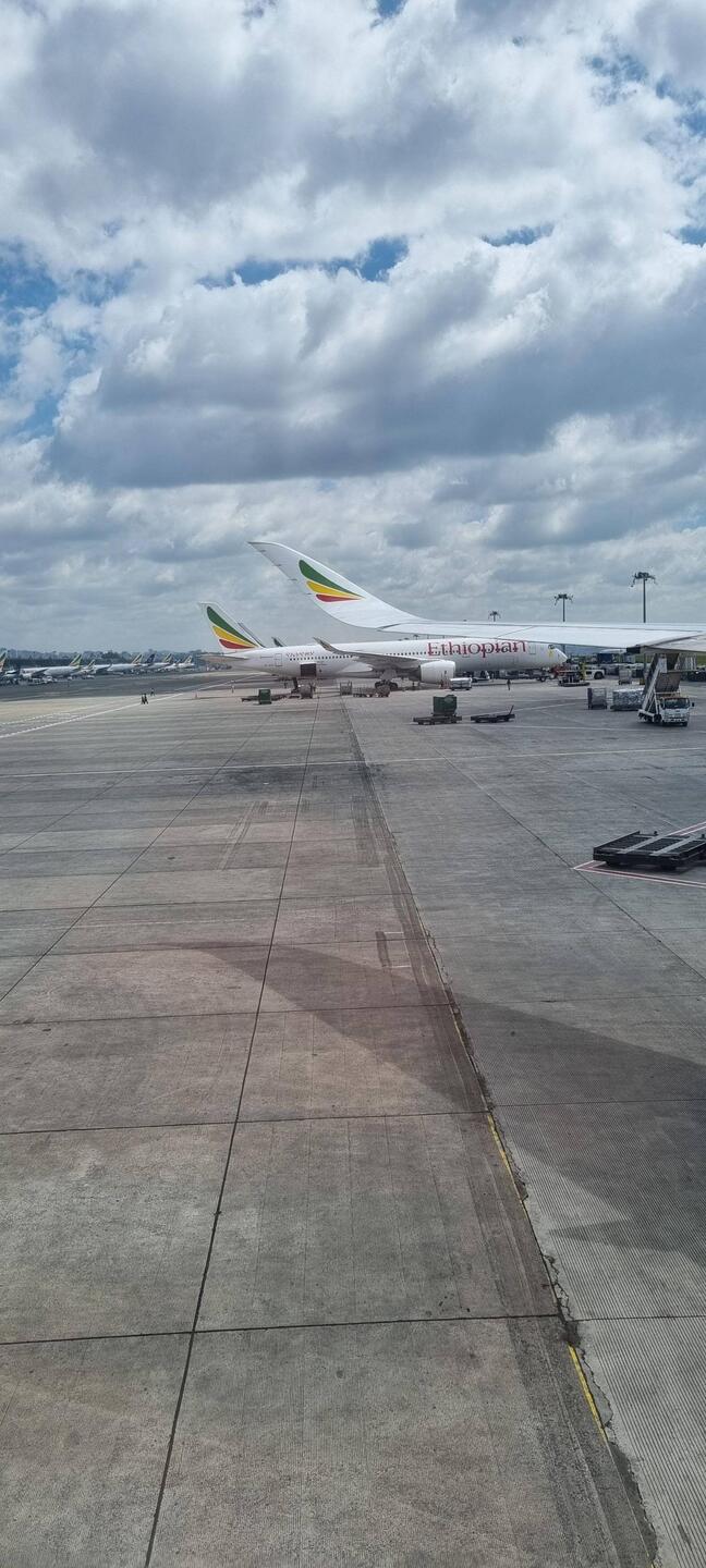 Früeh am Morge, semmer nacheme ruhige Nachtflug in Äthiopien acho. Det heimer eus zerst mal Bein vertrete ond es feins Zmorge gha, bevors gheisse hed zrög is Flogzug ond ab uf Sansibar🌿🥥🌴☀️