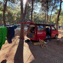 Campingplatz mit Barbecue… unter schattigen Bäumen … super schöne Atmosphäre… sogar mit Schildkrötenbesuch… Sonntag geht es nach Italien