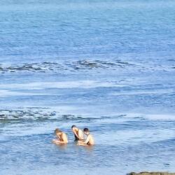 Arrivée de touristes qui ont pris le fameux train et que Victor oblige à se décrasser dans la mer avant de prendre une douche tellement ils sont noircis de fumée et de débris de minerai deLæs mere