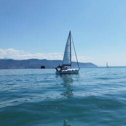 Partenza in perfetto orario in flottiglia di 4 barche. Abbiamo proceduto a motore fino all'uscita dal Golfo dei poeti ed ora procediamo a 4.6 nodi con prua 138° in direzione del porto di Pisa