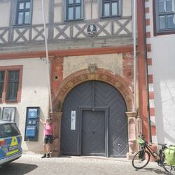 Von meiner Bed&Bike-Unterkunft den steilen Berg hinab, einmal kurz auf das andere Mainufer und ich bin in der Lohrer Altstadt. Wieder ein schmuckes fachwerkgeschmücktes Wein-Städtchen. Cafés, Biergärten, kleine Geschäfte prägen das Bild. Aber Lohr hat ein ganz besonders wertvolles Kleinod, das märchenhaft verzaubert. Das Schloss, in dem einst Schneewittchen lebte... Heute wird es Kurmainzer Schloss genannt und nur noch ein kleines Relief erinnert an die bedeutende Bewohnerin und ihr kleinen Freunde und Beschützer. Ganz nebenbei beherbergt es das Spessartmuseum, das das Leben der einfachen Leute und Handwerker durch die Jahrhunderte dokumentiert.