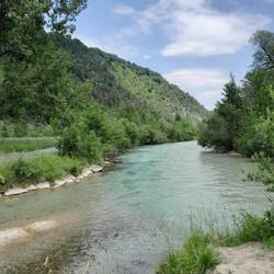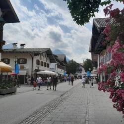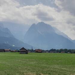 Dann treffen wir auf die tiefgrüne Loisach, die uns heute den ganzen Tag begleiteten wird. Was für wundervolle Ausblicke auf das Voralpenland, das Wettersteingebirge und eben mein Ziel, die Zugspitze. Alpenidylle und Klischee pur mit blühenden saftigen Wiesen, Kühen mit Kuhglocken, vielen kleinen oberbayerischen Orten mit den so typischen bemalten Häusern, Sturzbäche mit kristallklarem Wasser und Wasserfällen....und alles bei wunderbarstem Sommerwetter. Schöner kann kein Abschluss sein.