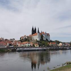 Langsam verändert sich die Landschaft, sie wird hügelig, hohe Felsen ragen am Ufer empor. Wir radeln in das Gebiet der sächsischen Weinstraße und es wird immer schöner und schöner (toll das Schloss Diesbar-Seußlitz mit seinem wunderschönen Park). Dann plötzlich der Blick auf die Meißener Albrechtsburg. Fantastisch. Und genauso ist Meißen mit seinen wunderbaren Gassen, den alten Häusern und dem so beeindruckenden Porzellan (absolut unbezahlbar). Bezahlbar ist aber der "Meißner Fummel". Warum dieses so brüchige Gebäck so heißt, ist mir immer noch nicht klar und schmecken tut es auch nicht. Aber es gibt eine wunderbare Geschichte dazu. Demnach verkehrte zwischen Dresden und Meißen regelmäßig ein sächsischer Kurier des Kurfürsten, der wohl gern ein Gläschen zu viel trank....Daraufhin befahl der Kurfürst der Bäckerzunft Meißens ein leicht zerbrechliches Gebäck herzustellen, was heil nach Dresden gebracht werden musste... Die Geburtsstunde des "Meißner Fummels".