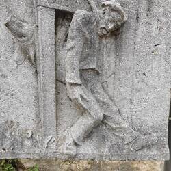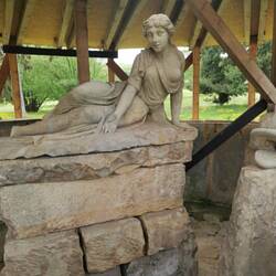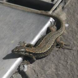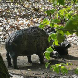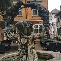 Schnell mit der Fähre übersetzen und ich stehe in Königswinter vor der ältesten in Betrieb befindlichen Zahnradbahn Deutschlands. Abenteuerlich ruckelnd und ein wenig antik miefend geht's dann an den Ort, wo Siegfried den Drachen erschlagen und in seinem Blut gebadet haben soll. Ob ich fast auf den Schwanz eines Nachkommen dieses Ungeheuers trete, kann ich nicht sagen, aber als Fotomotiv stellt sich mir die Echse zumindest dankbar zur Verfügung.
