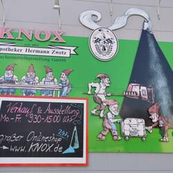 Ich weiß, in Mohorn muss ich abbiegen. Was ich aber nicht weiß, in dem winzigen Örtchen Mohorn ist Knox. Sagt mir immer noch nichts. Bis ich davor stehe und das Räuchmännchen und die Tüten erkenne. Ich stehe vor der Produktionsstätte der Knox-Räucherkerzen (Knox ist seit 1865 die älteste deutsche Produktionsstätte). Früher wurden diese kleinen Hütchen tatsächlich in Handarbeit, meist in Heimarbeit, gefertigt. Sie wurden geknetet. Für 1 Kilo bekam man sage und schreibe 25 Pfennige... Im Ausstellungs- und Verkaufsraum kann ich es dann nicht lassen, jetzt befindet sich ein "Original Erzgebirge Knox-Räuchermännchen" auf dem Weg zu mir nach Hause.