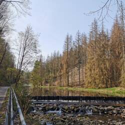 Leider verlasse ich damit auch die schöne Landschaft und Kilometer um Kilometer radel ich einfach nur ab (Chemnitz muss nicht schön sein und die Gegend nördlich davon ist es definitiv auch nicht). Erst mit Erreichen der Mulde (einem kleinen Flüsschen) kurz vor der Thüringenschen Grenze wird es wieder richtig schön.