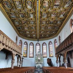 Erst als ich an der Dorfkirche von Tröbsdorf vorbeifahre, komme ich auf andere Gedanken. Eine unscheinbare Dorfkirche vom großen Lyonel Feininger gemalt, kaum zu glauben. Aber er lehrte von 1919 bis 1925 im Bauhaus in Weimar und suchte sich in der Umgebung immer wieder Motive (die Kirche erkenn ich auf seinem Bild allerdings nicht..).