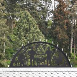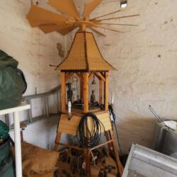 Und dann treffe ich Frank. Ich fotografiere gerade seinen so schönen Schwibbogen auf der Garage, als er dahinter hervorkommt. Erst überm Zaun und dann in seinem Garten bei ner Flasche Bier erzählt er von seinem Leben. 76 sei er jetzt, sei früher Radrennen gefahren und später Bauingenieur geworden. In den letzten Jahren habe er so manches wegstecken müssen, fast wäre er daran zerbrochen. Aber das sei Vergangenheit, ihm gehe es so was von gut. Er habe so viele Hobbys, fahre immer noch Fahrrad (jetzt mit E und Komoot), töpfere, schnitze und hätte ganz viel Spaß an Menschen. Während er so erzählt, verliebe ich mich in seine Augen. Sie sprühen vor Wärme, Energie und Lebensfreude, einfach toll. Zum Abschied zeigt er mir seine selbstgebaute Weihnachtspyramide und ich habe das Gefühl, einem ganz besonderen Menschen begegnet zu sein. Schade, dass ich mal wieder das gemeinsame Foto vergesse.