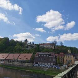 Plötzlich ein Aufschrei von Claudi: "Die Pullerburg!" und sie zeigt auf ein wunderbares Schloss auf der anderen Elbseite. Es ist das Schloss Hohenstein, in dem wohl früher kleine Bettnässer behandelt wurden.